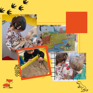 První dva únorové týdny byly ve znamení dinosaurů! Povídali jsme si o suchozemských, létajících i vodních dinosaurech, řekli jsme si, kdy a kde žili a čím se živili. V úterý 7.2. jsme si užili ukázkovou lekci Chytrých hlaviček, na které jsme za pomocí kartiček poznali nové druhy dinosaurů, rozdělili jsme je na masožravce a býložravce a na konec jsme dělali pokusy: Děti si například vyrobily dinosauří vajíčka, skládaly kostru dinosaura, hledaly zkameněliny v písku, vytvářely vlastní fosilie z hlíny, a dokonce sestavily dinosaura, který mohl za pomocí kolíčků žvýkat. Nechybělo ani pečení dinosauřích sušenek, které sklidilo velký úspěch. Kromě dinosaurů jsme také opakovali tvary – kruhy, trojúhelníky, kosočtverce, šestiúhelníky, osmiúhelníky a lichoběžníky.