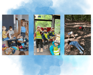Nechyběl ani Forest Day. 🌲 Děti navštívily rybník Terezka a oboru Hvězda. Také děti z Krče se vydaly na „výlet k moři“, 🚤 povídaly si o tom, co je na cestě může potkat, koho tam mohou vidět 🐠 a jak se tam dopravit. Na konci týdne je čekal Forest Day s názvem Naše výprava k moři. A co děti na Žižkově? Stavěly hrady z písku 🏰 nebo vyrazily ven pozorovat letadla ✈️ a povídat si o cestování právě letadlem.